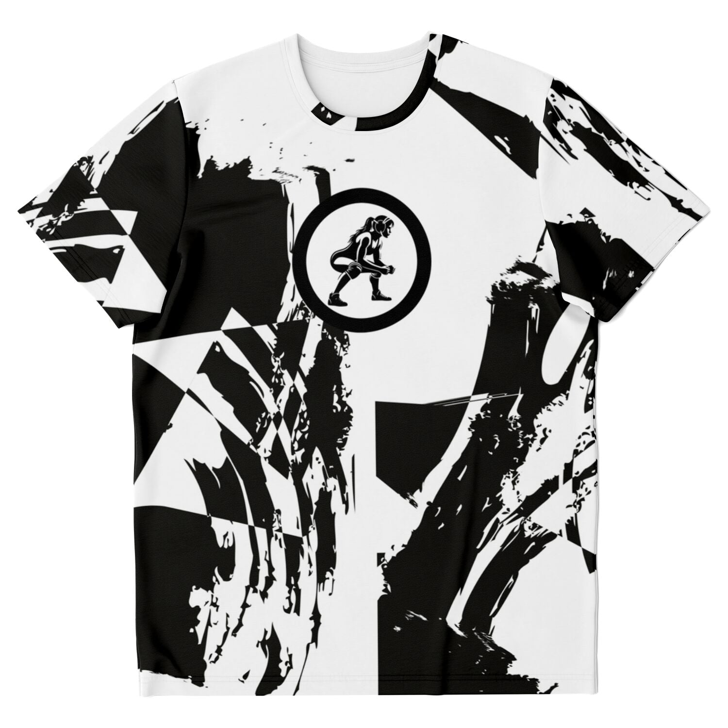 4Wrestlers Abstract Black and White Womens Wrestling All Over Print T-shirt