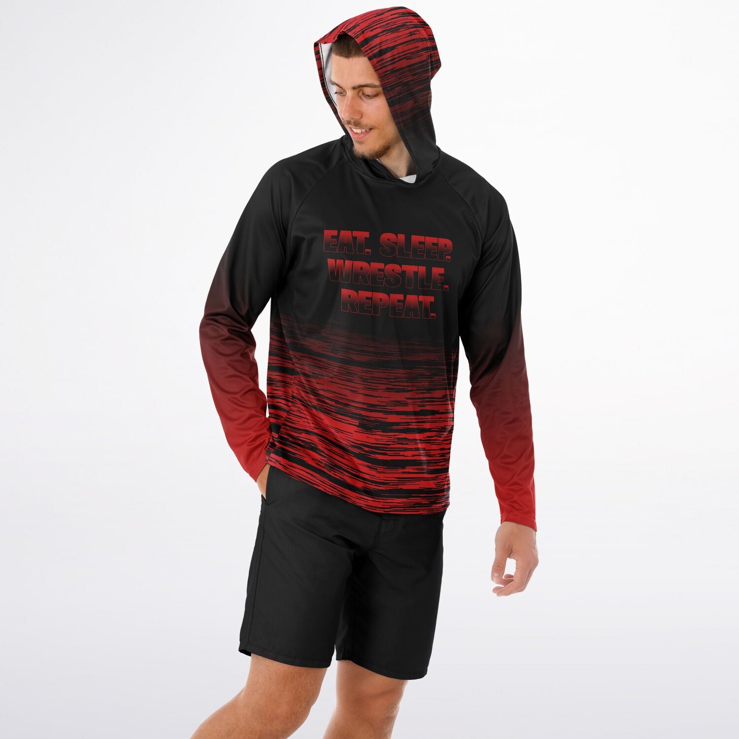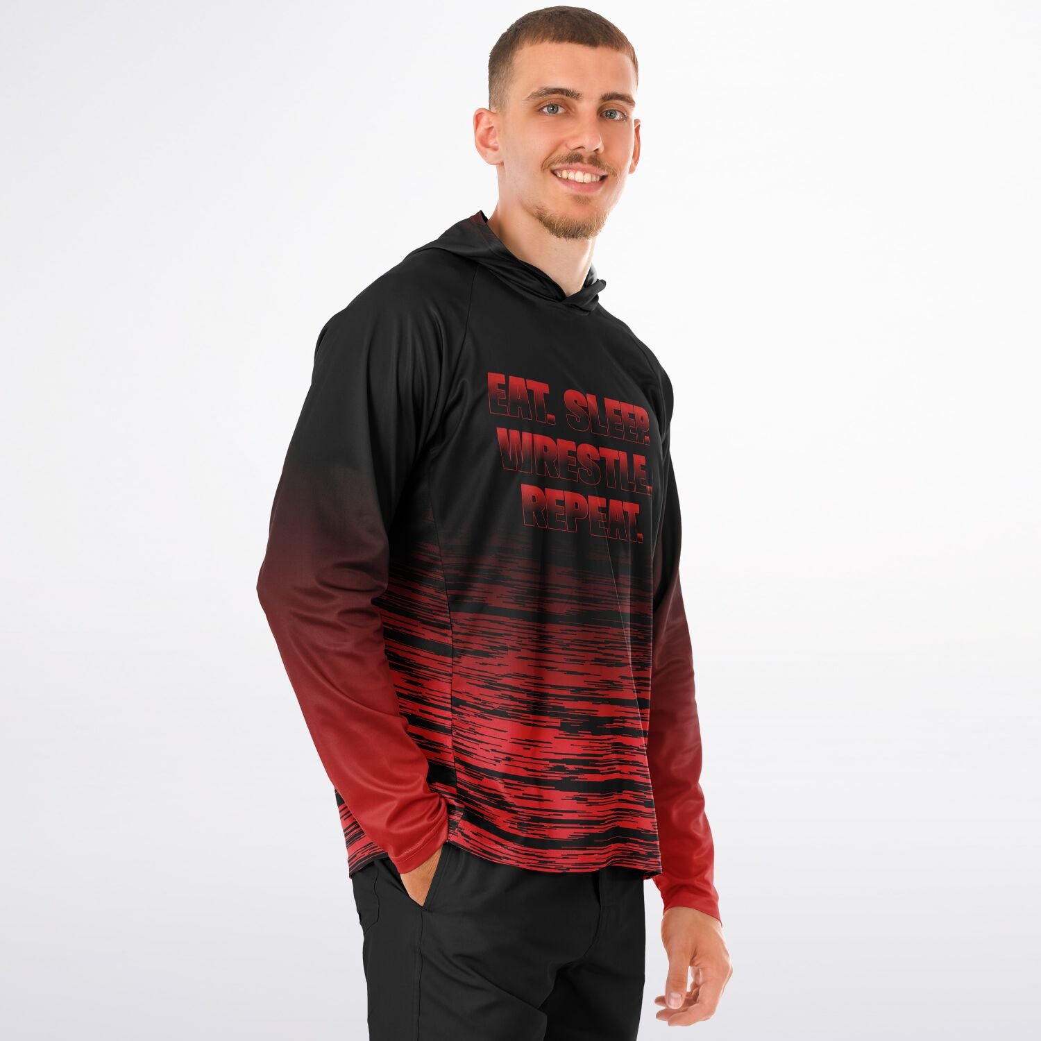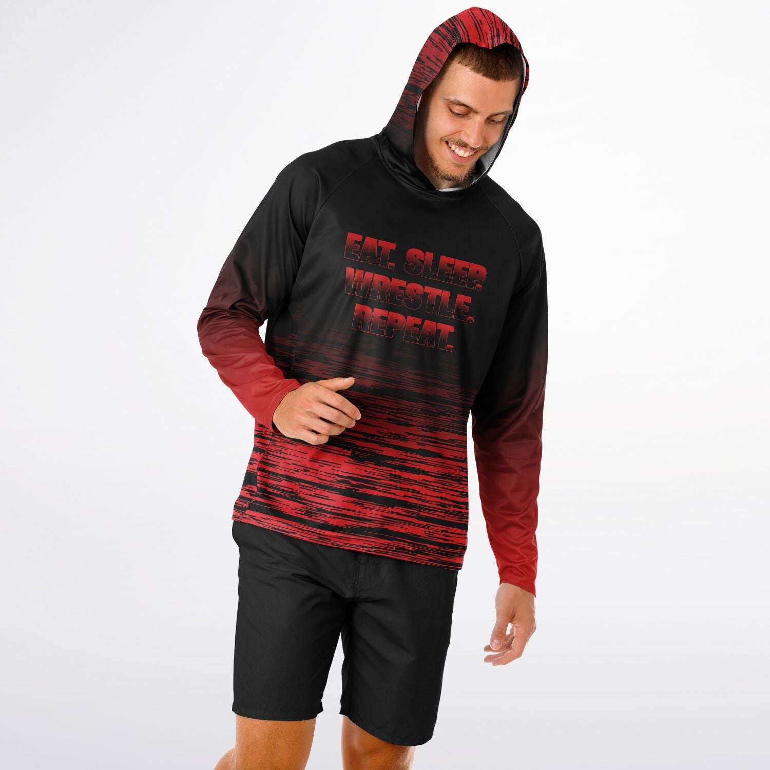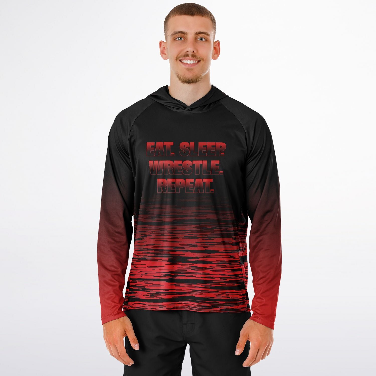 4Wrestlers Eat Sleep Repeat Wrestling Men's Long Sleeve Hooded Performance Shirt - AOP