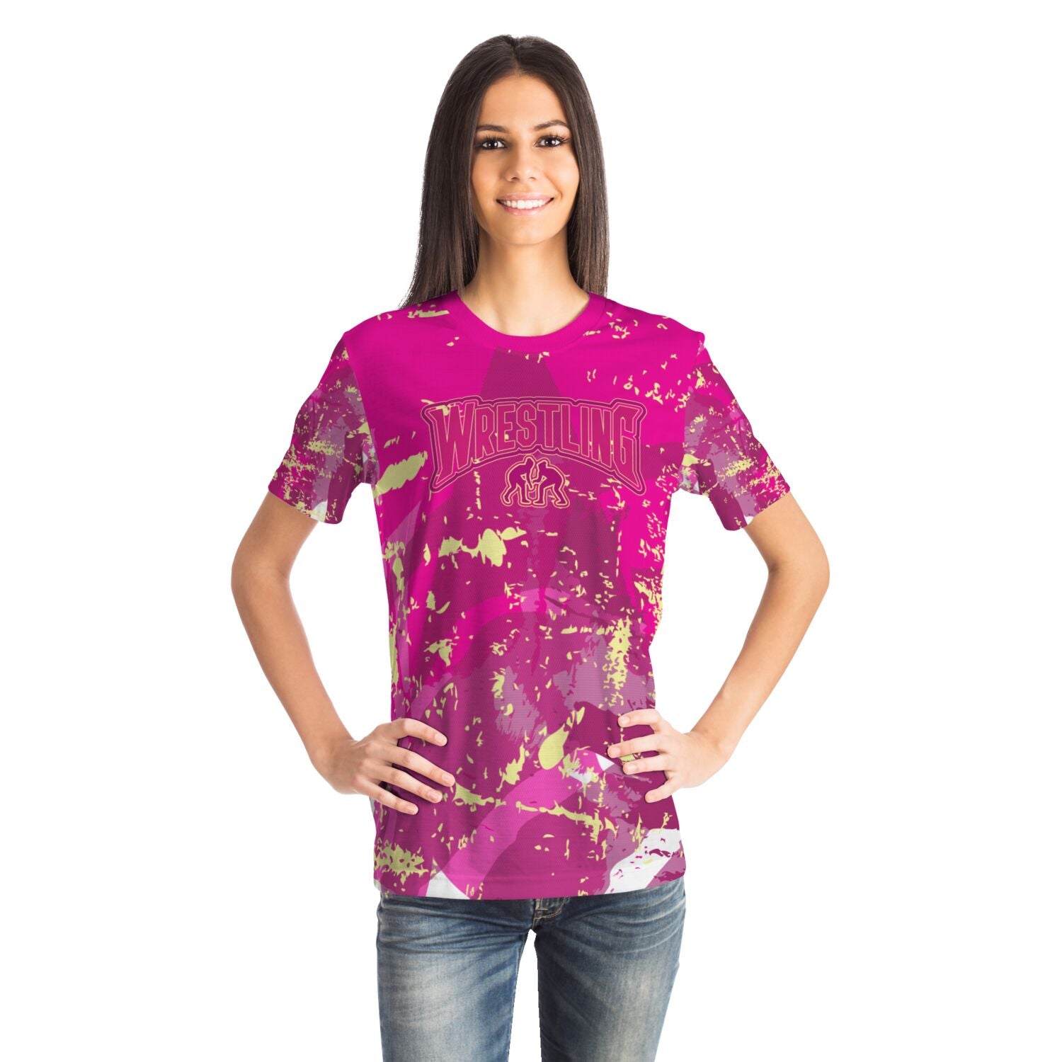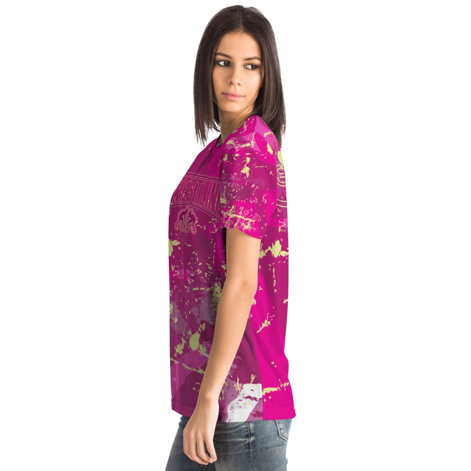 4Wrestlers Hot Pink Abstract Womens Wrestling T-shirt