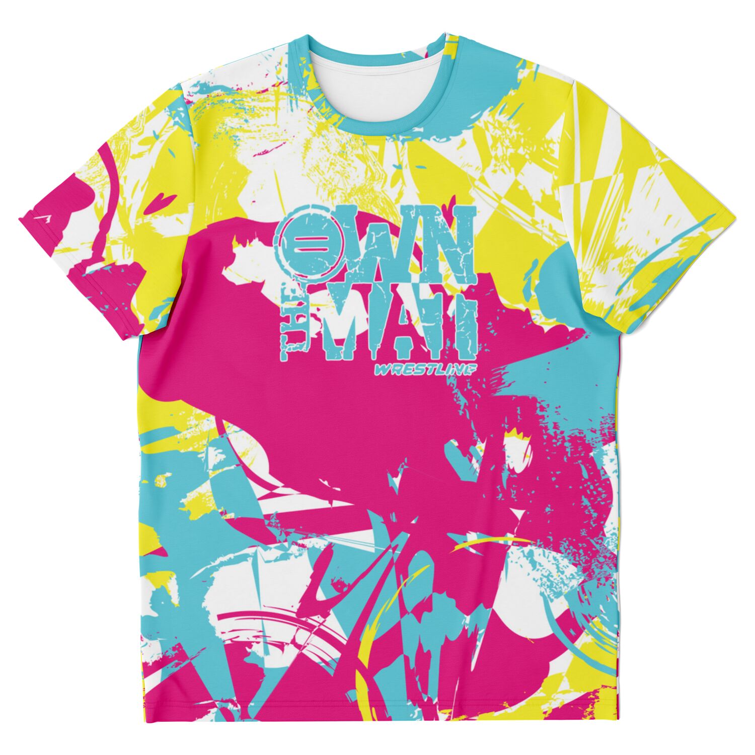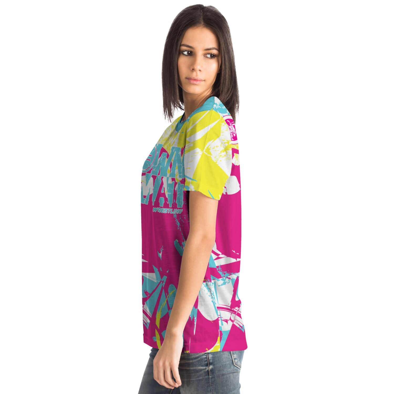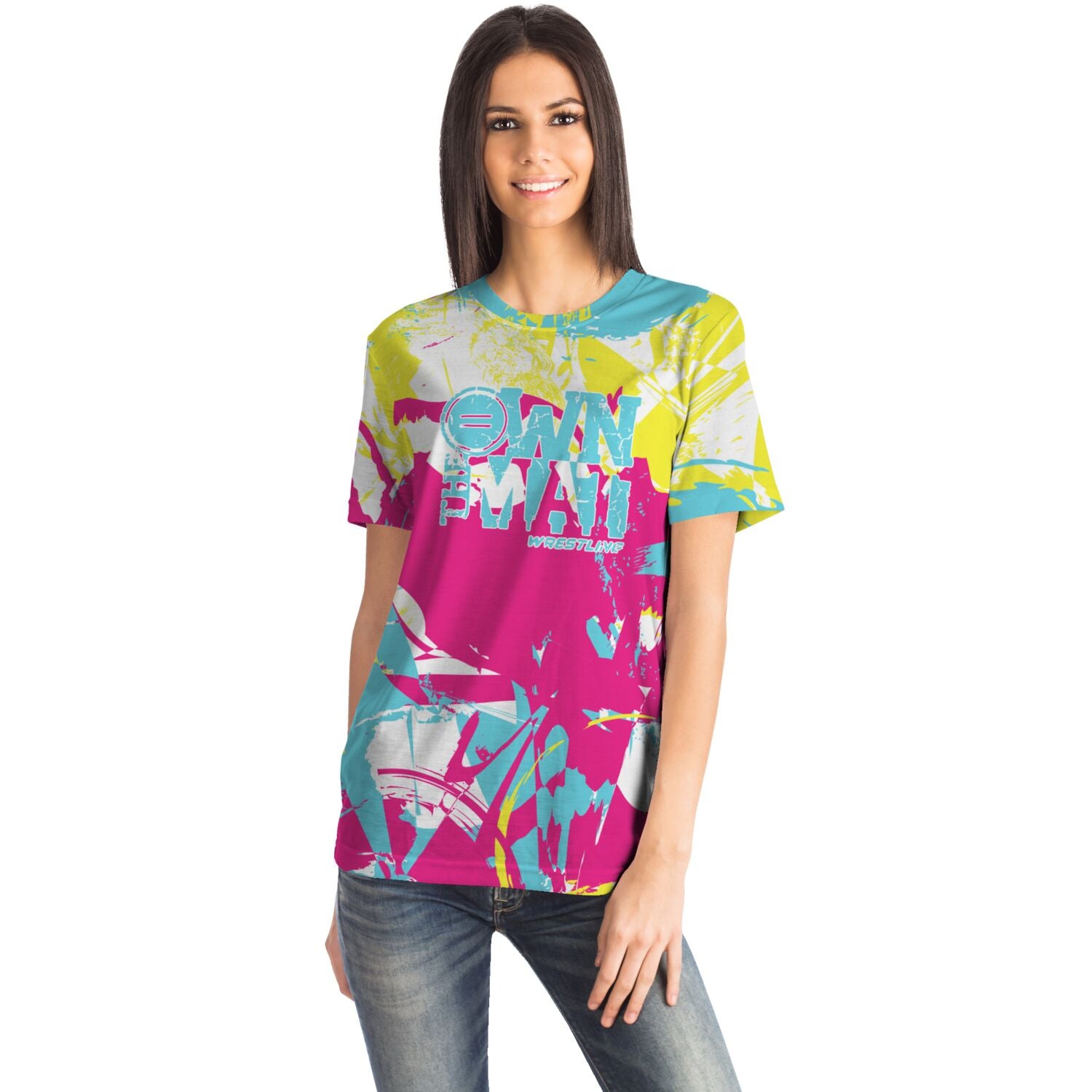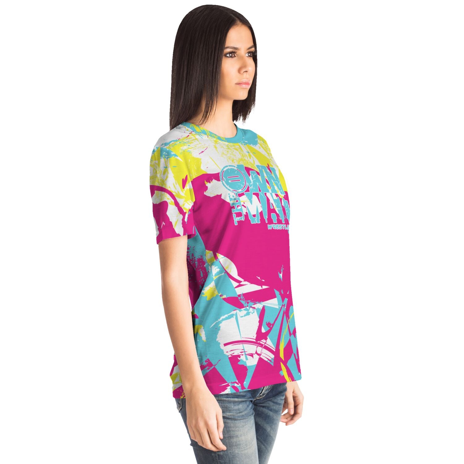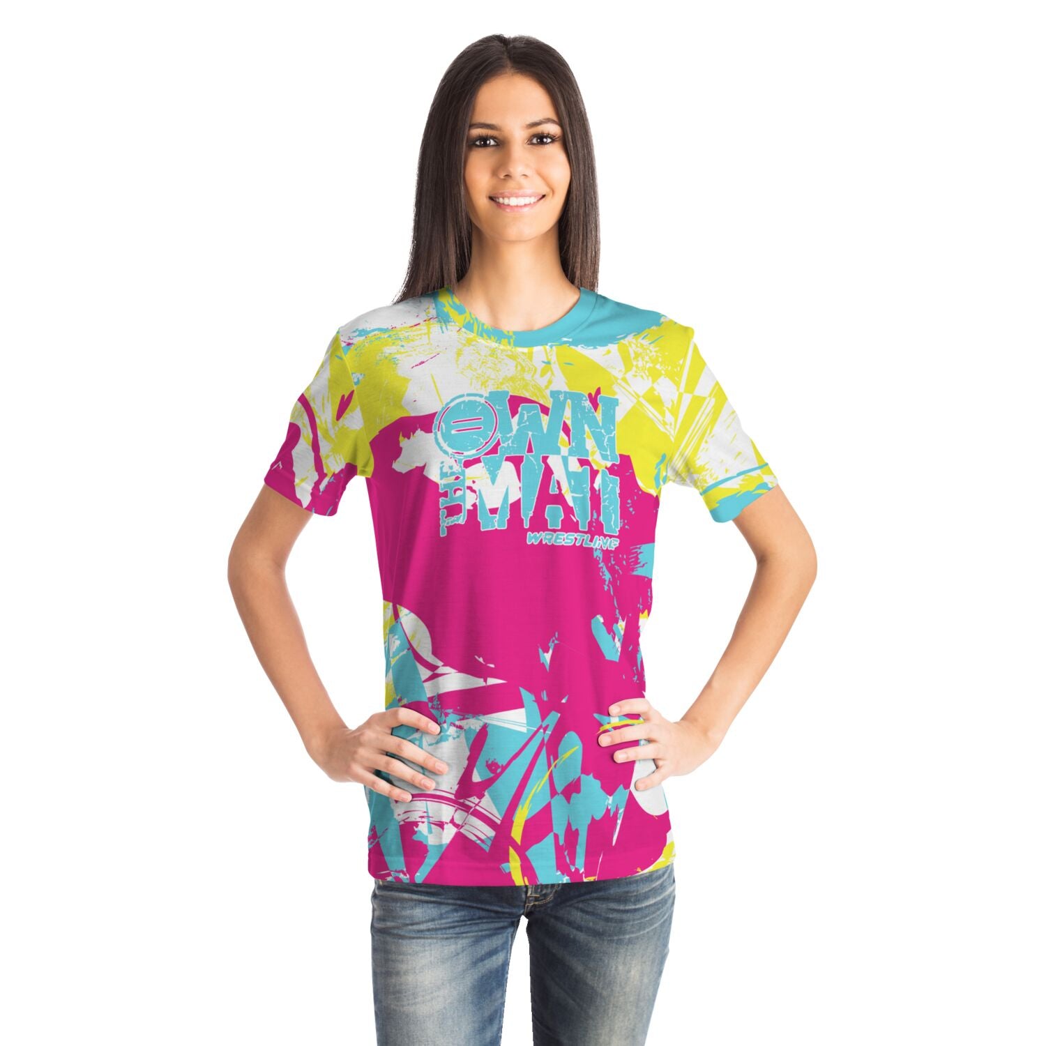 4Wrestlers Hot Pink & Yellow Own the Mat Women's Wrestling T-shirt