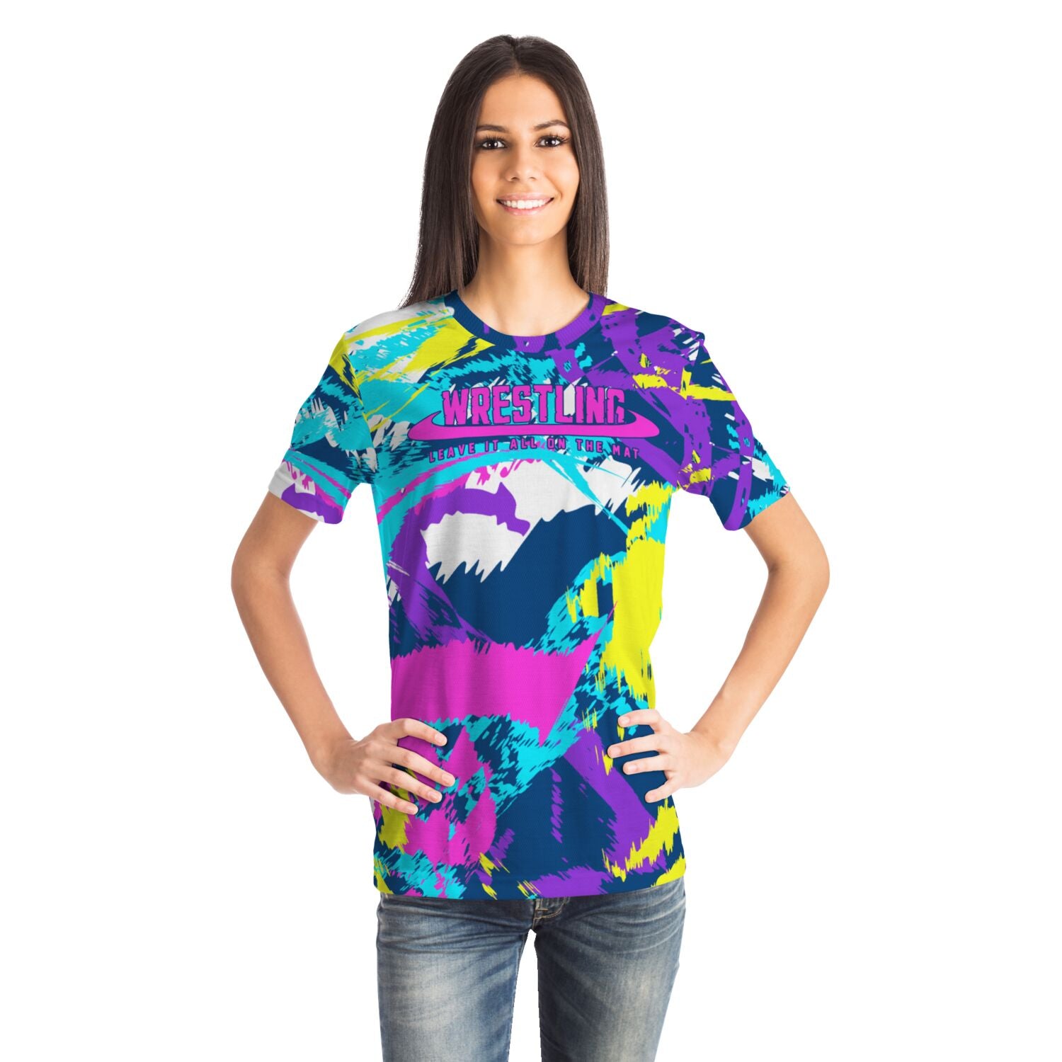 4Wrestlers Leave It All On The Mat Purple Splatter Womens Wrestling T-shirt