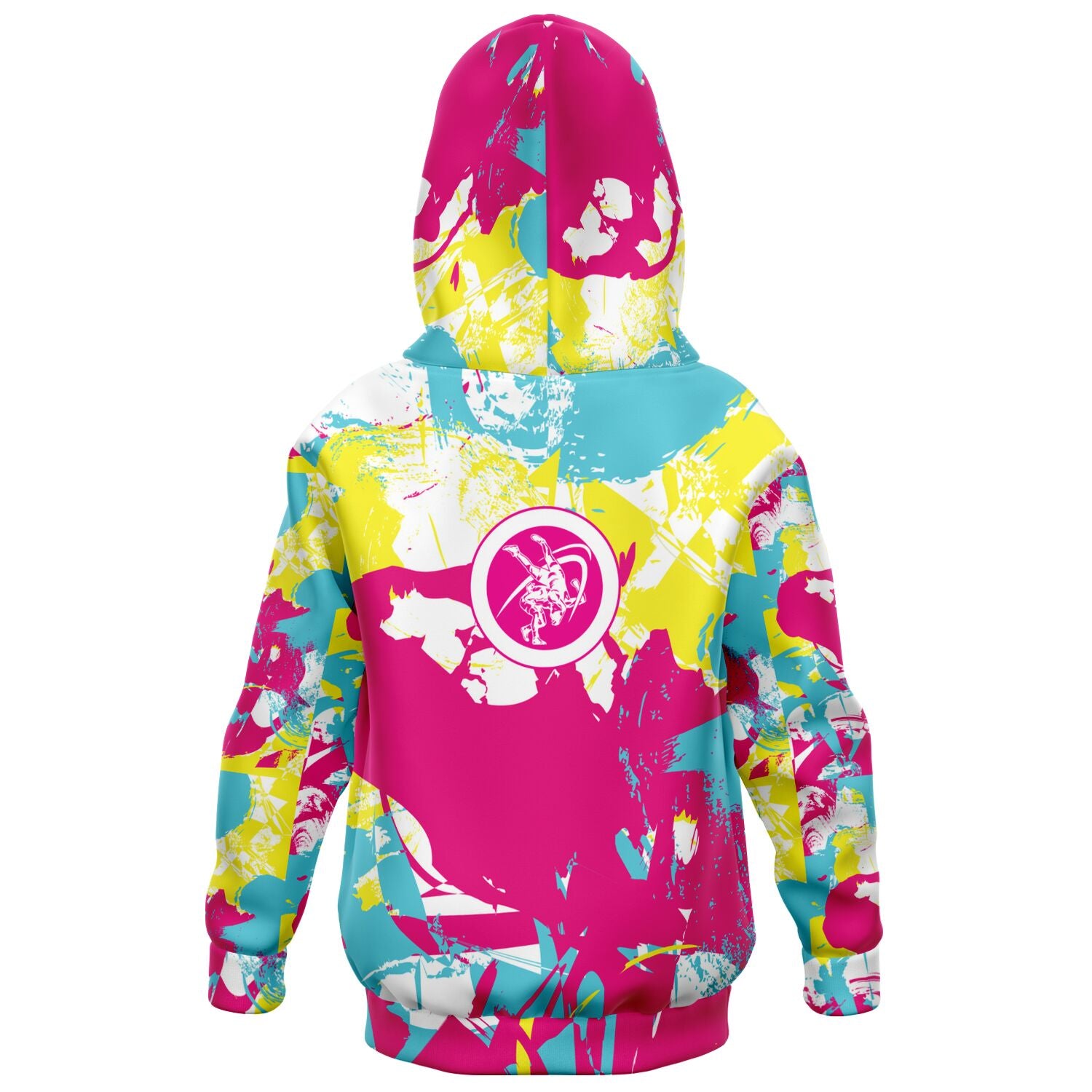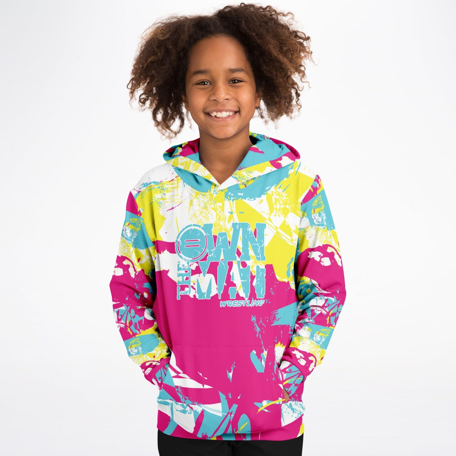 4Wrestlers Neon Pink & Yellow Own the Mat Youth Girls Wrestling Athletic Kids Hoodie - AOP