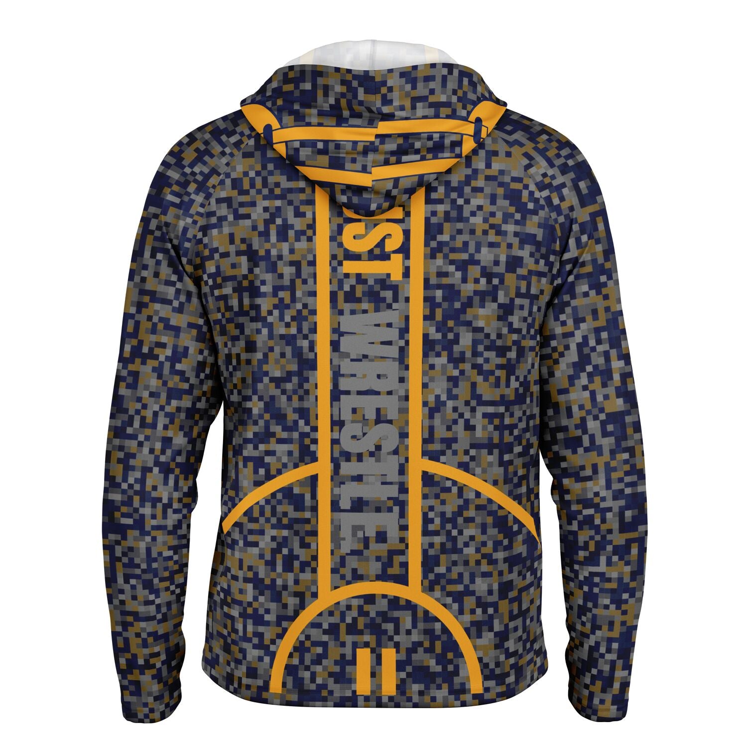 State of Wisconsin Wrestling Men's Wrestler Long Sleeve Hooded Performance Shirt - AOP Pixel Camo