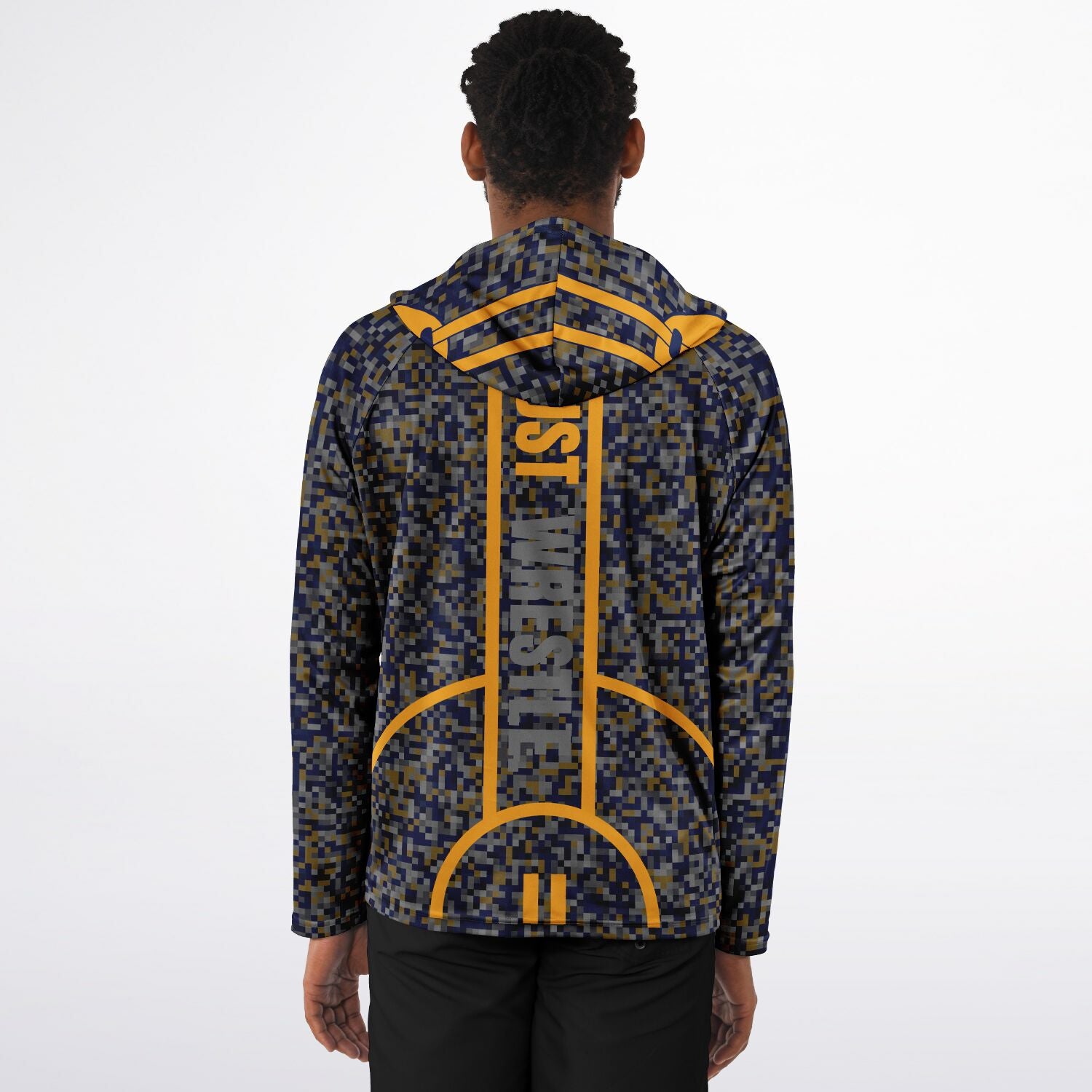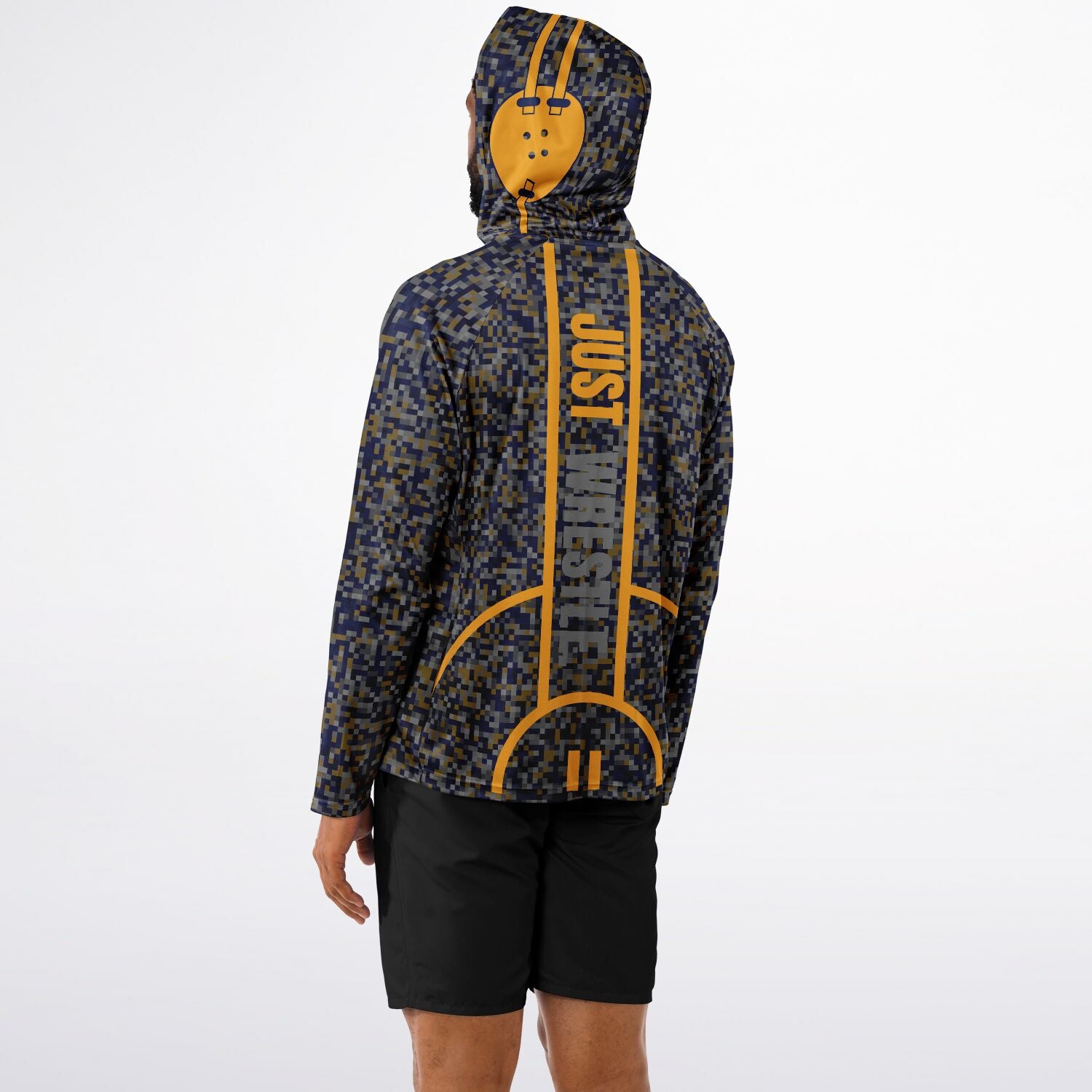 State of Michigan Wrestling Men's Wrestler Long Sleeve Hooded Performance Shirt - AOP Minecraft Camo