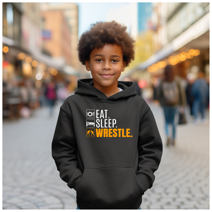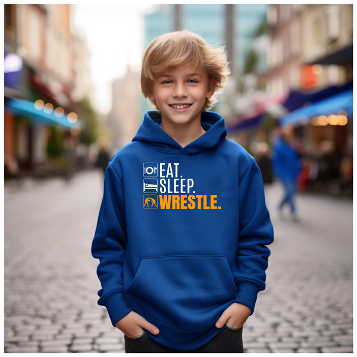 Funny Eat Sleep Wrestle Gift for Wrestlers Youth Hoodie Heavy Blend Hooded Sweatshirt