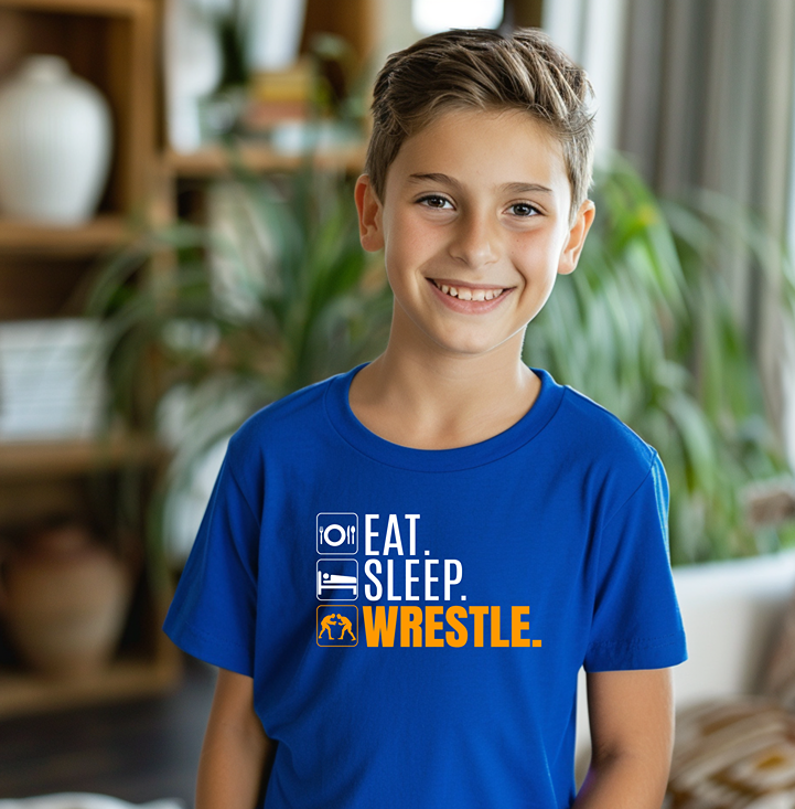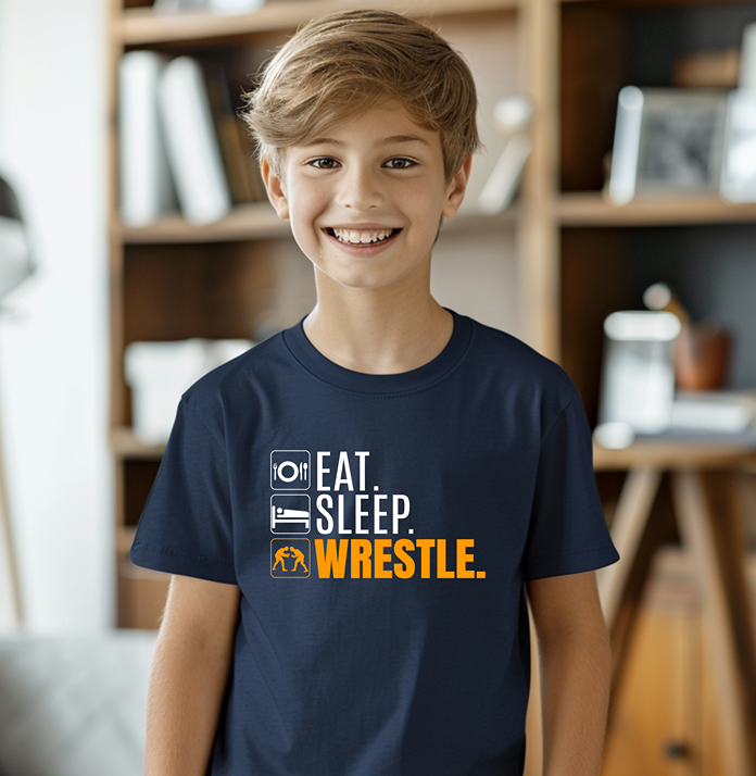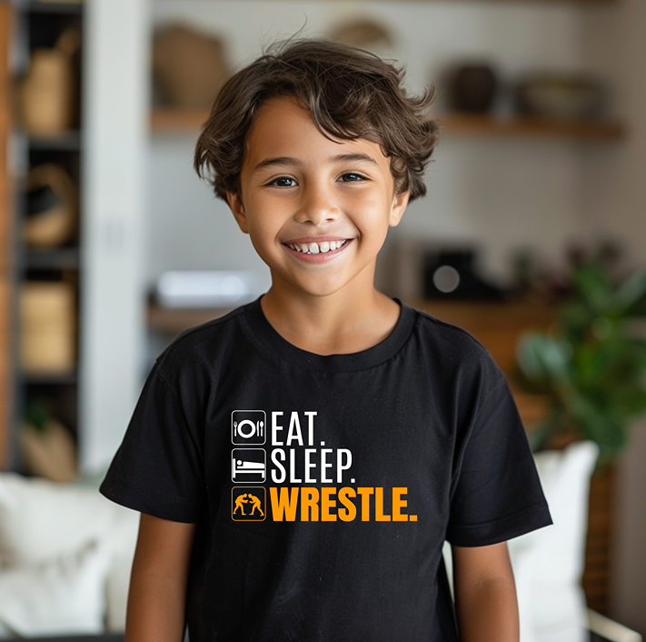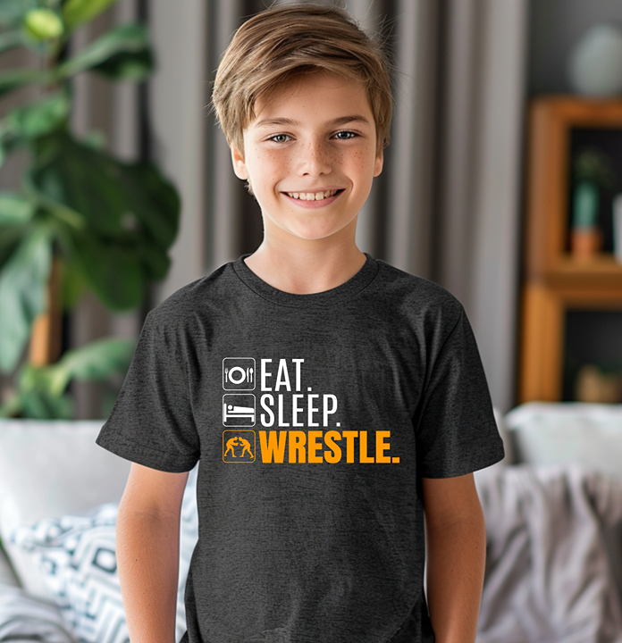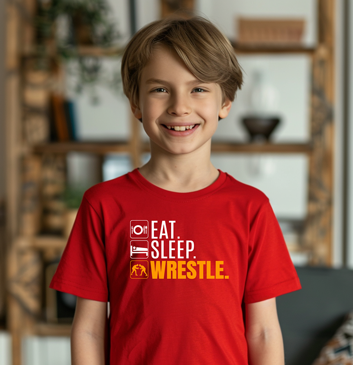 Funny Eat Sleep Wrestle Youth Freestyle Wrestling T-Shirt Kids Wrestler Tee