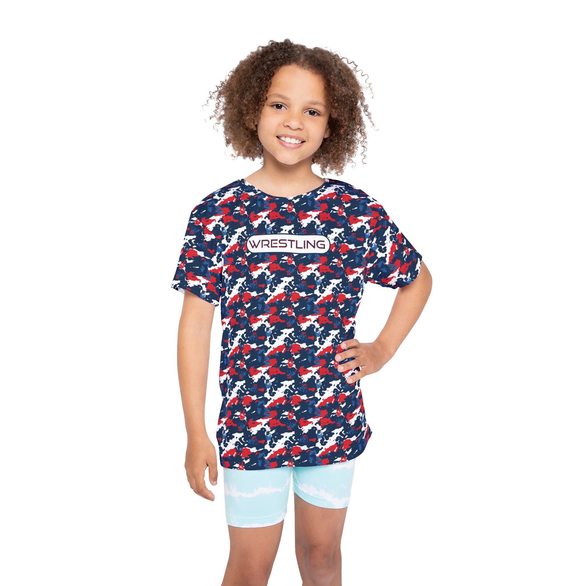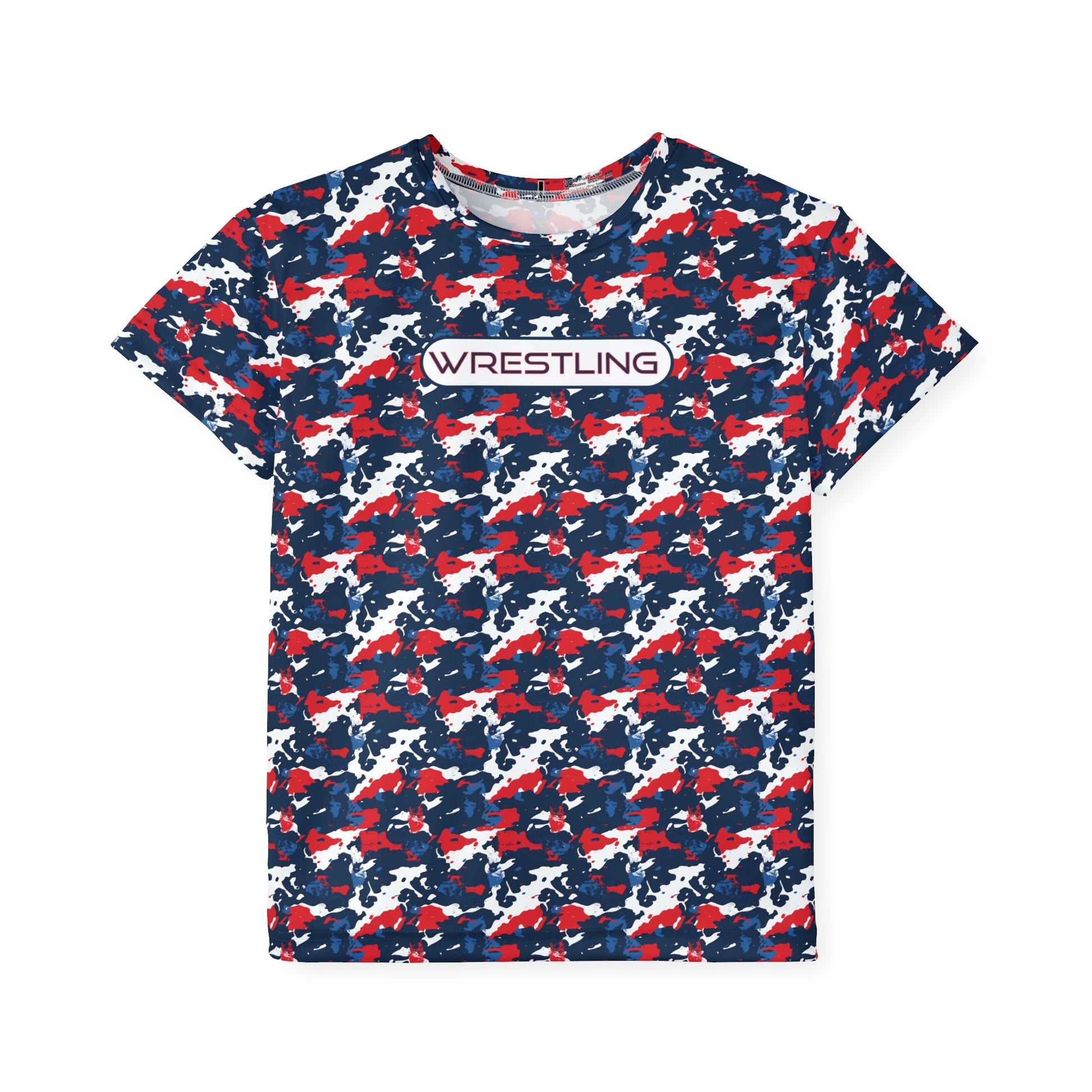 Kids Wrestling Sports Jersey - Red, White & Blue Camouflage Tee