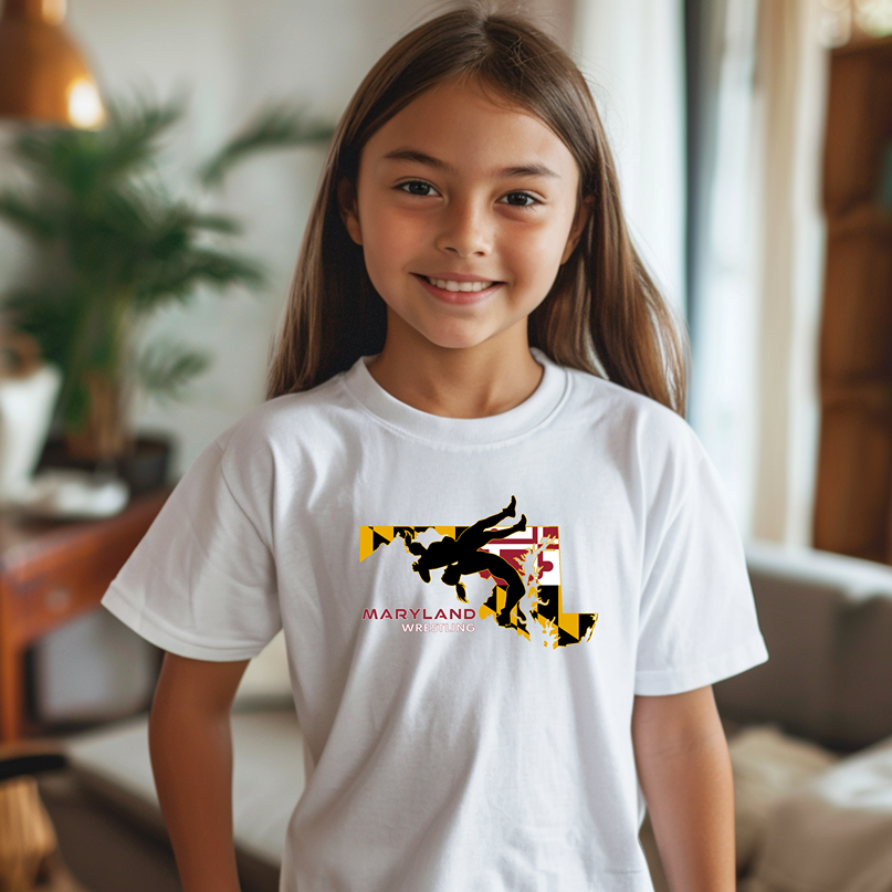 Maryland High School Girls Wrestling Marylander State Flag Youth Freestyle Wrestling T-Shirt Kids Wrestler Tee