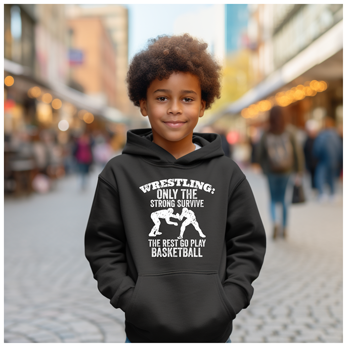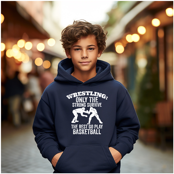Only Strong Survive Wrestling Quote graphics Wrestler Gifts Youth Hoodie Heavy Blend Hooded Sweatshirt