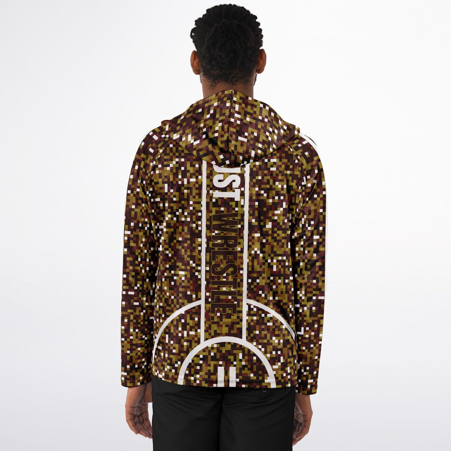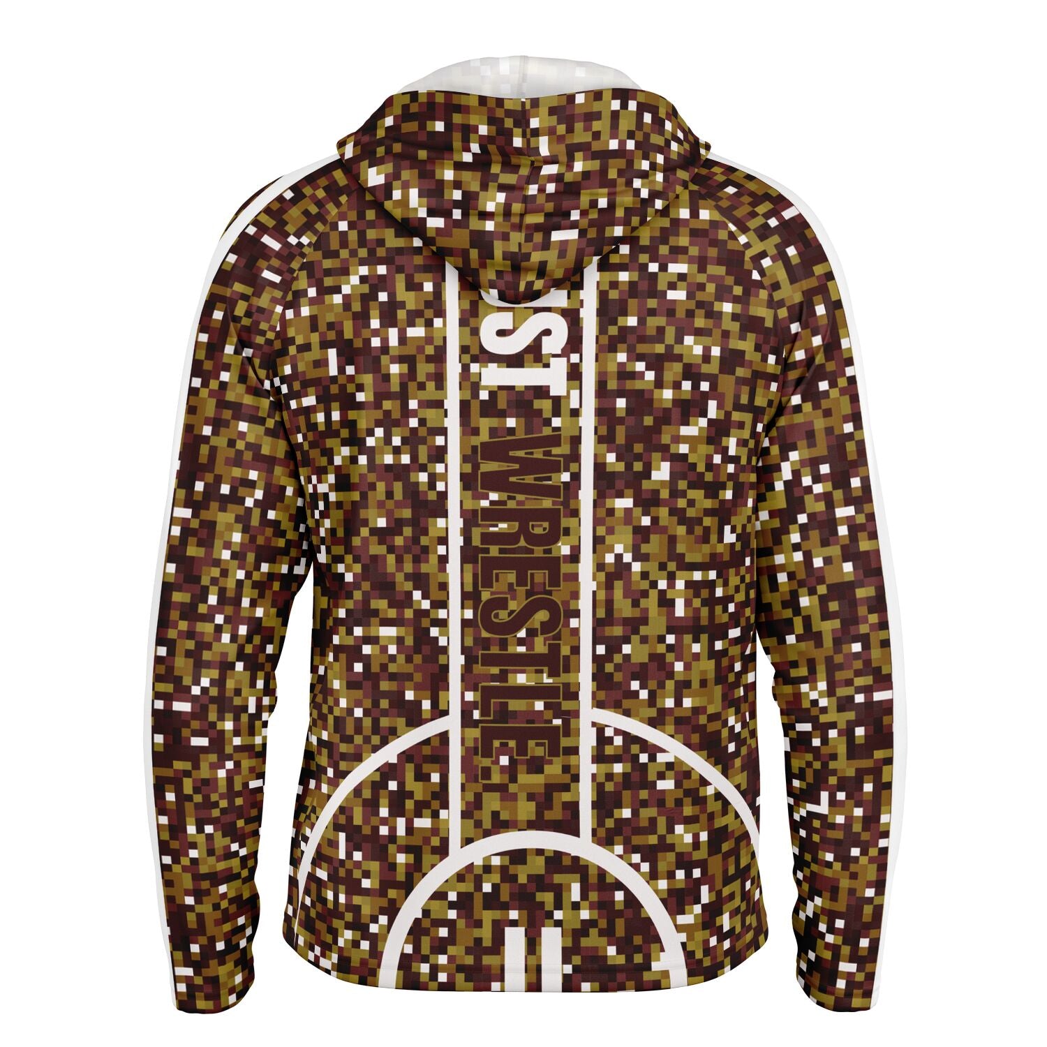 State of Wisconsin Wrestling Men's Wrestler Long Sleeve Hooded Performance Shirt - AOP Pixel Camo
