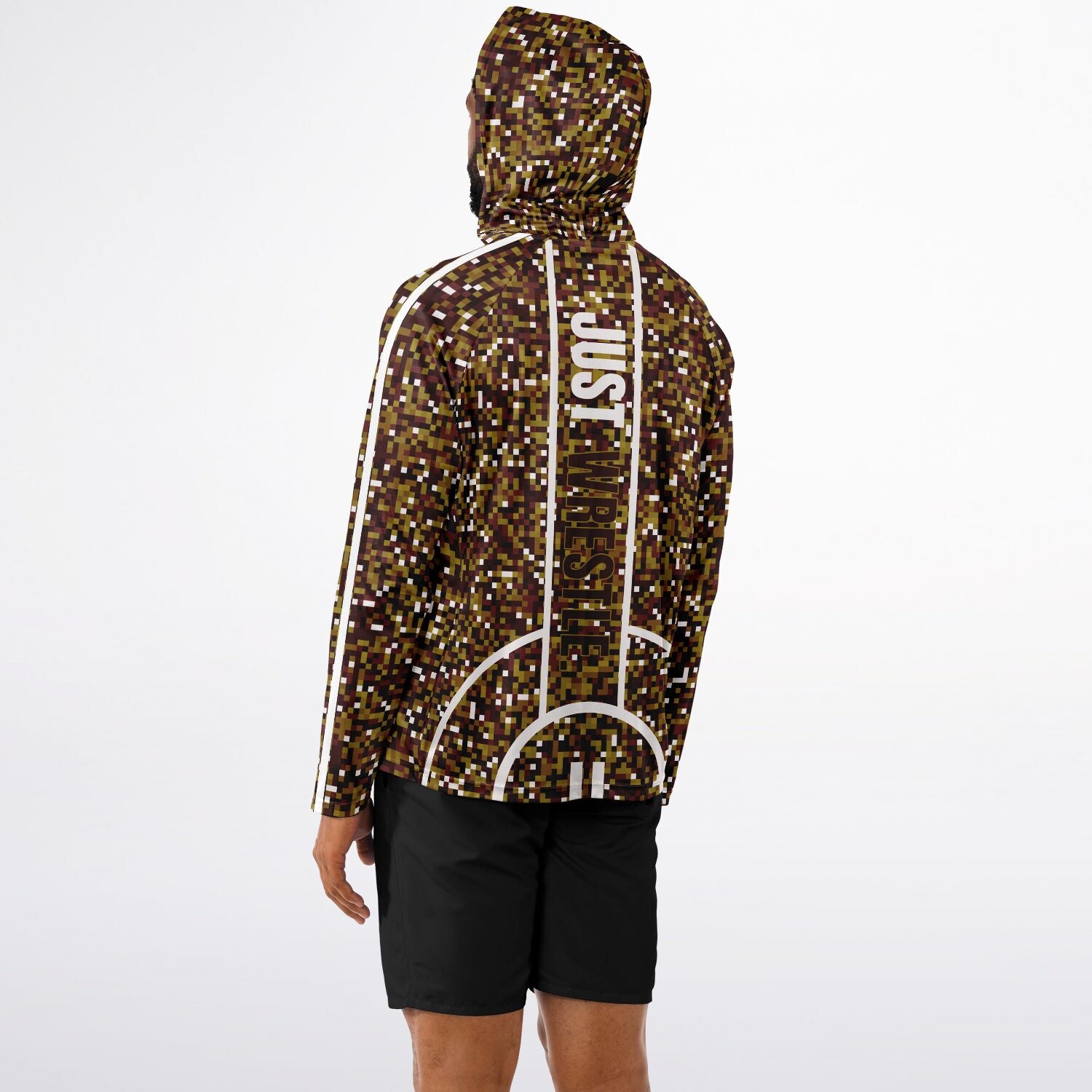 State of Michigan Wrestling Men's Wrestler Long Sleeve Hooded Performance Shirt - AOP Minecraft Camo