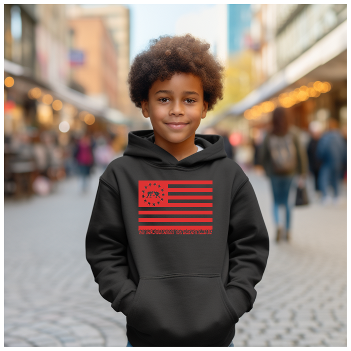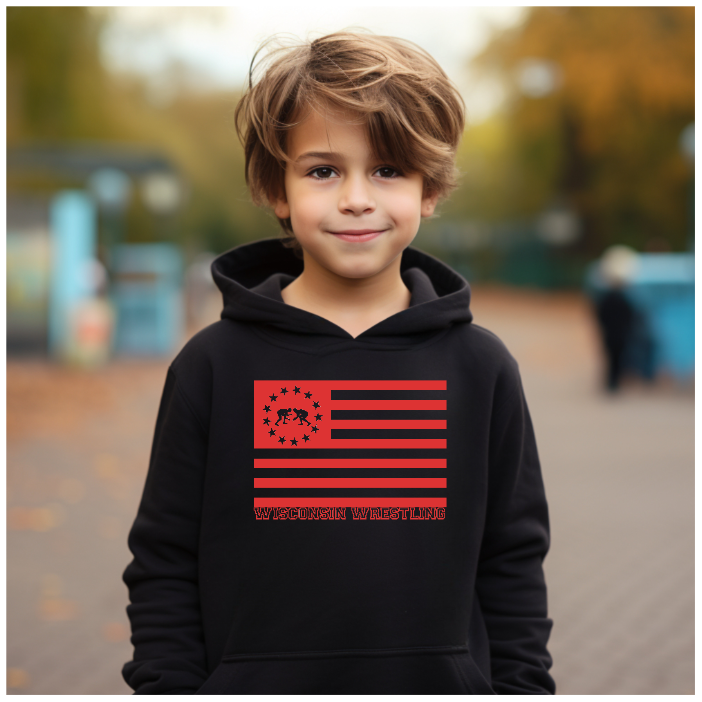 USA Flag Wrestler Badger State Tween Wisconsin Wrestling Youth Hoodie Heavy Blend Hooded Sweatshirt