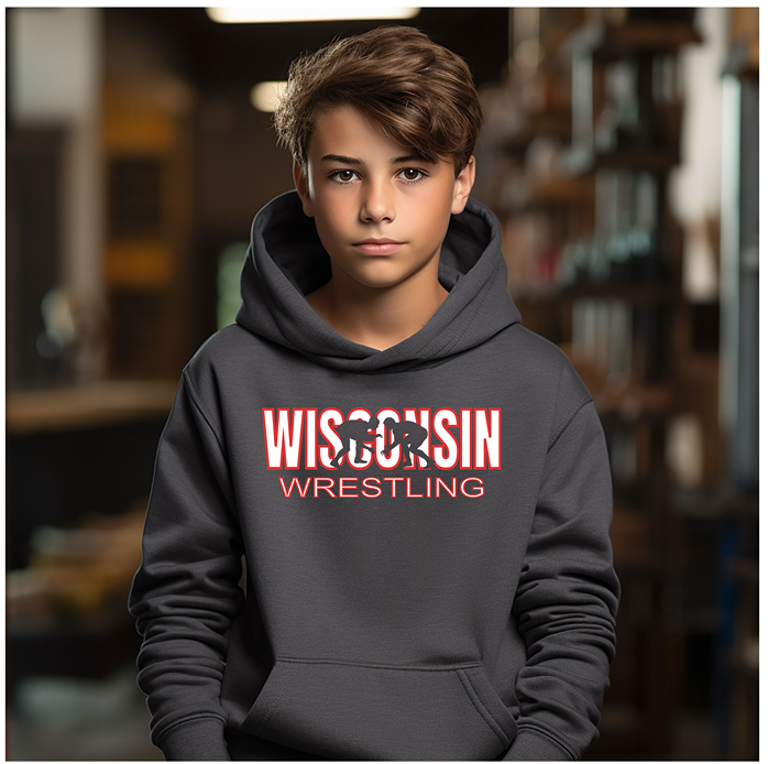 Wisconsin Wrestling Team Tween Wrestler State Pride Gift Youth Hoodie Heavy Blend Hooded Sweatshirt