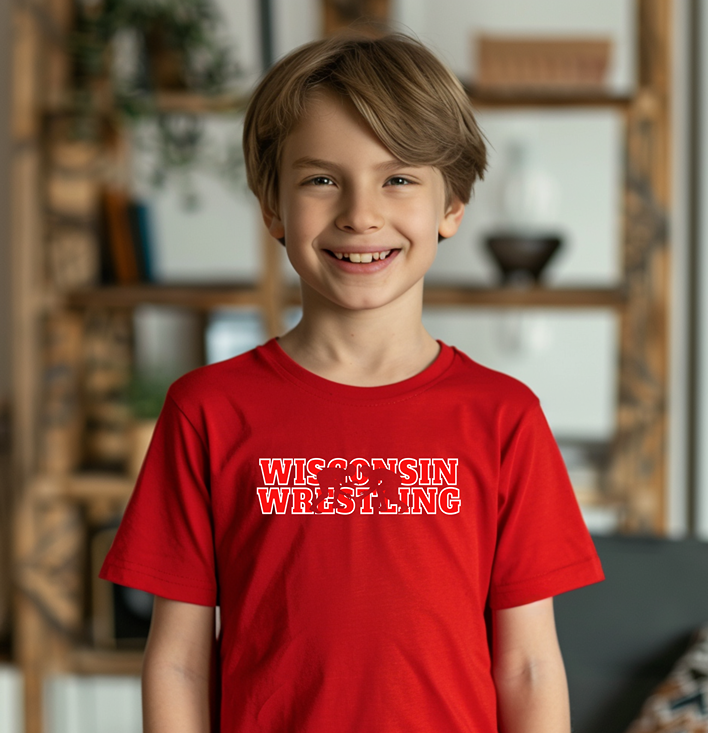 Wisconsin Wrestling Team Wrestler The Badger State Youth Freestyle Wrestling T-Shirt Kids Wrestler Tee