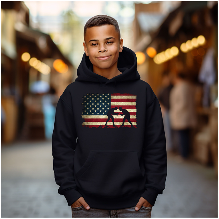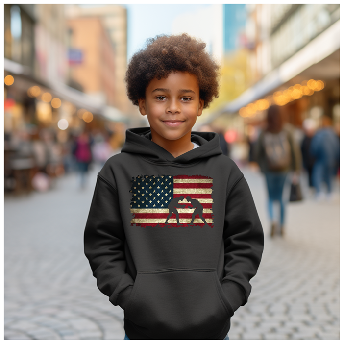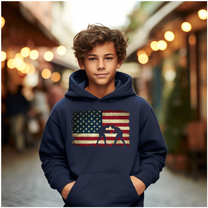 Wrestling American Flag prints Gift for a Wrestler Youth Hoodie Heavy Blend Hooded Sweatshirt