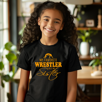 Wrestling Sister My Favorite Wrestler Calls Me Sister Youth Freestyle Wrestling T-Shirt Kids Wrestler Tee